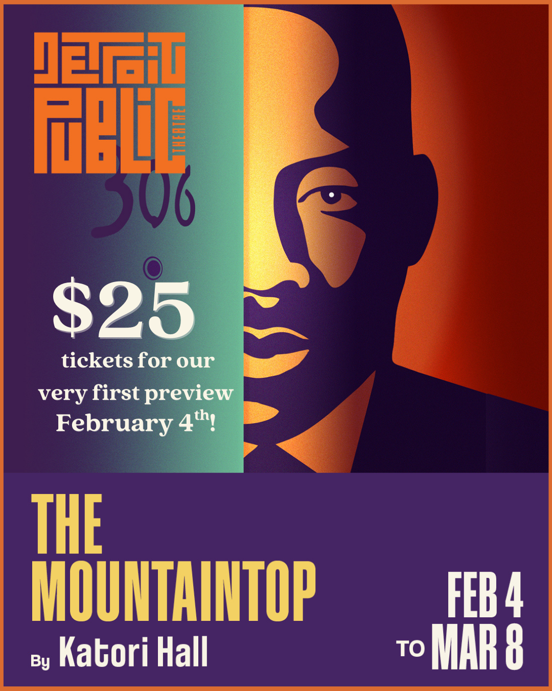 Detroit Public Theatre is thrilled to offer $25 tickets for our very first preview performance on February 4th. Get tickets while they last!